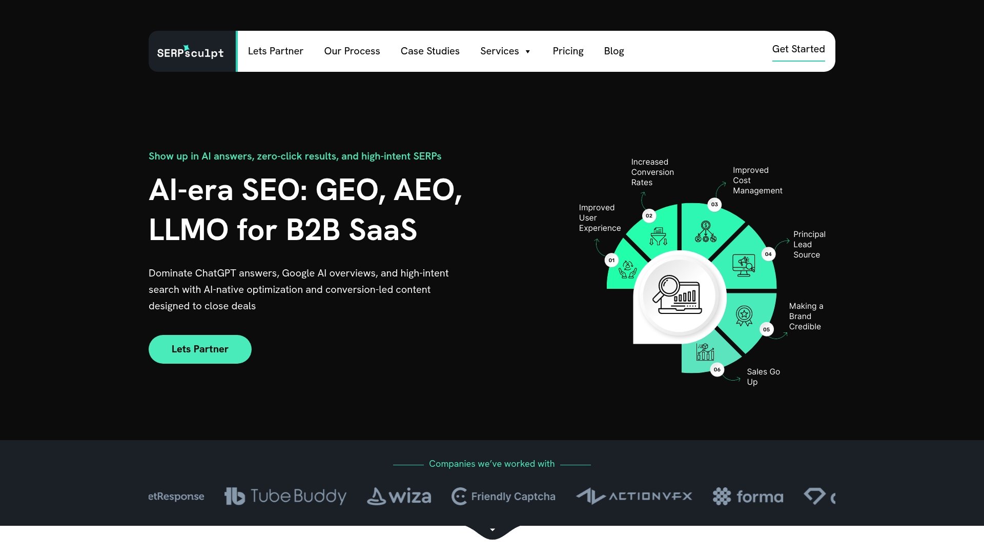 | SerpSculpt | AI-native SEO en B2B-saasspecifieke strategieën | Gerichte conversieoptimalisatie, maatwerkopties | Hoge kosten voor kleinere bedrijven | $4.988 - $12.328 afhankelijk van pakket | Gevestigde SaaS en techbedrijven |