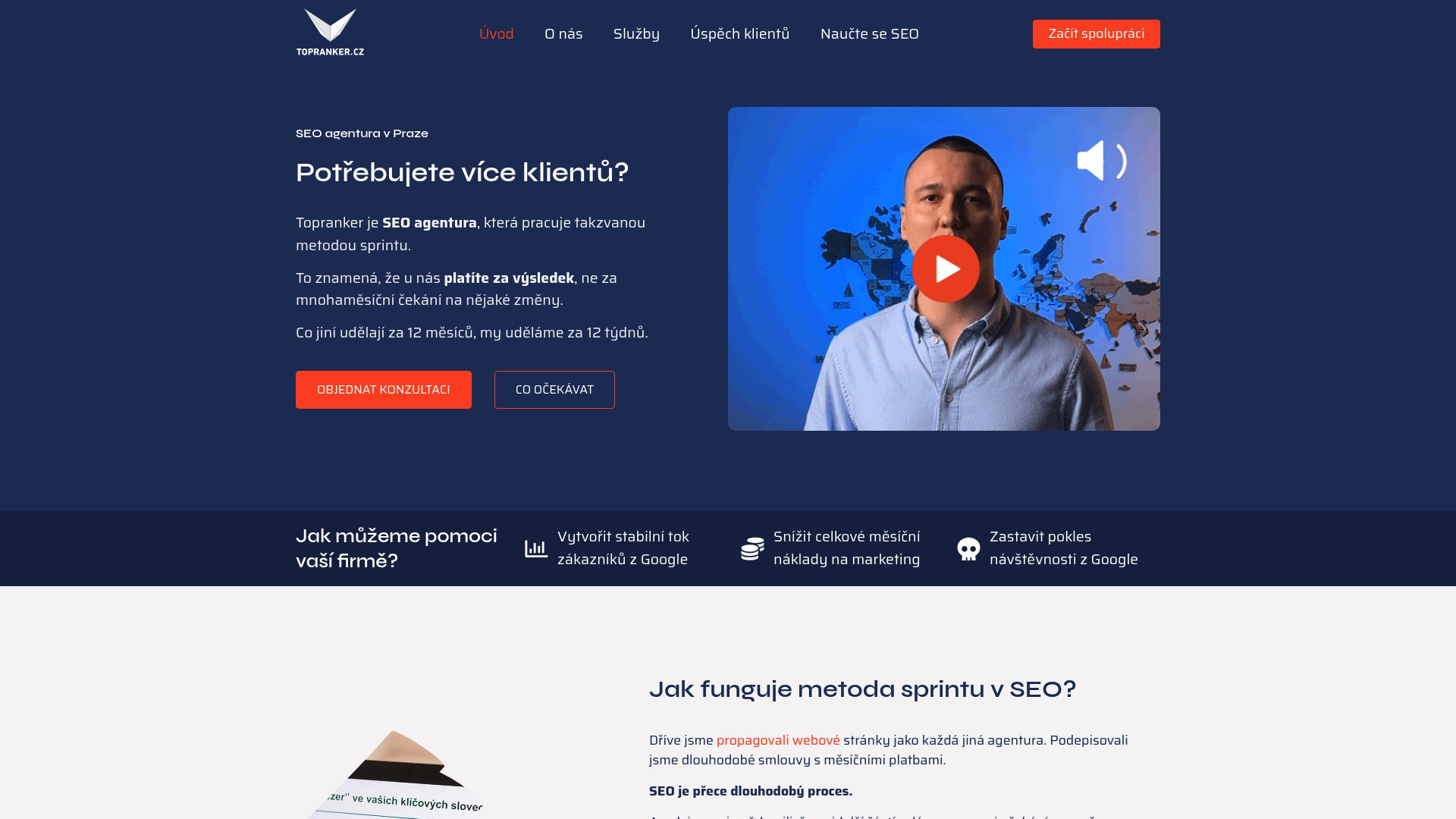 Topranker.cz je pražská SEO agentura, která dělá věci jinak: platíte za výsledky, ne za měsíční paušály. Jejich metoda sprintu slibuje rychlé, konkrétní akce s doručením výstupů do 12 týdnů, což ocení majitelé malých a středních firem v Táboře, kteří potřebují měřitelné zlepšení návštěvnosti bez dlouhodobých závazků. Dobrý výchozí bod pro firmy, které chtějí rychlý impulz. A ano, počítá se s jasnými milníky.