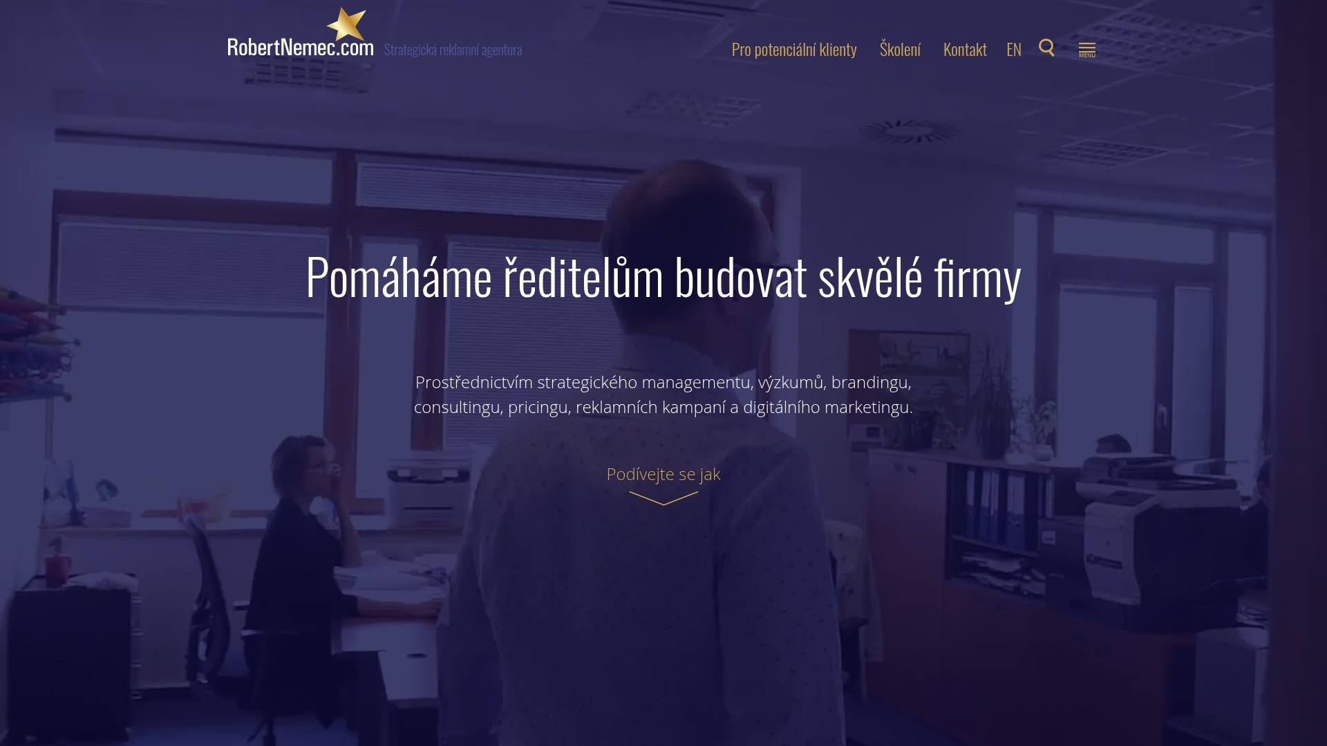 robertnemec.com je reklamní a digitální agentura se silným strategickým a vědeckým přístupem, která od roku 2014 kombinuje psychologii s marketingovou exekucí. Nabízí komplexní servis od výzkumu přes branding až po multikanálové kampaně, a přitom si drží vysokou úroveň personalizace. Pokud chcete partnera, který pracuje jako interní poradce, tady ho najdete. Nečekejte levné řešení pro každého.