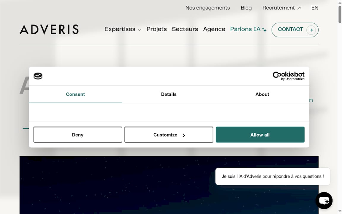 Adveris combine expertise technique et éco-responsabilité pour livrer des sites et applications performants et moins consommateurs de ressources. L’avantage principal réside dans la centralisation des compétences en interne, qui accélère la livraison et sécurise la qualité.