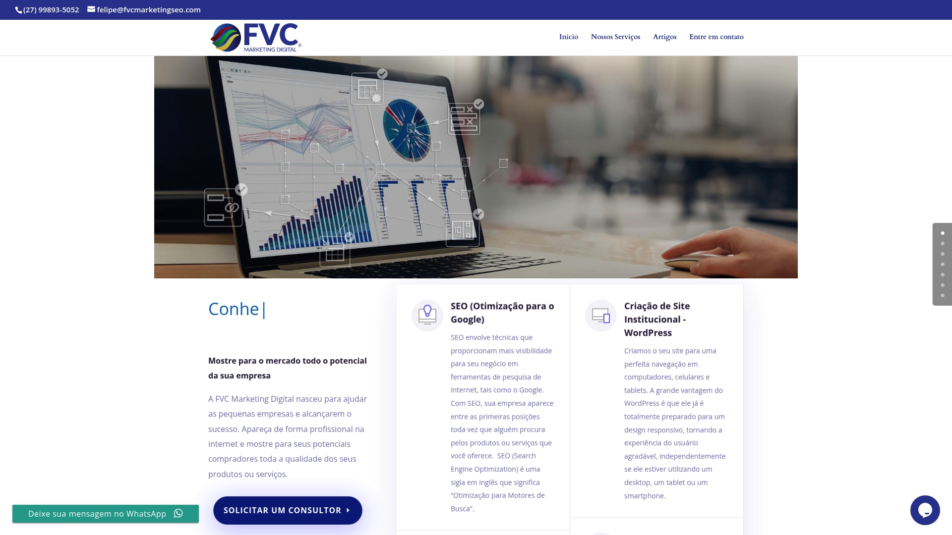 | FVC Marketing Digital | Serviços de SEO, hospedagem, lojas virtuais, e gestão de anúncios. | Foco em pequenas empresas; serviços abrangentes. | Preços não especificados; detalhes técnicos limitados. | Sob consulta. |