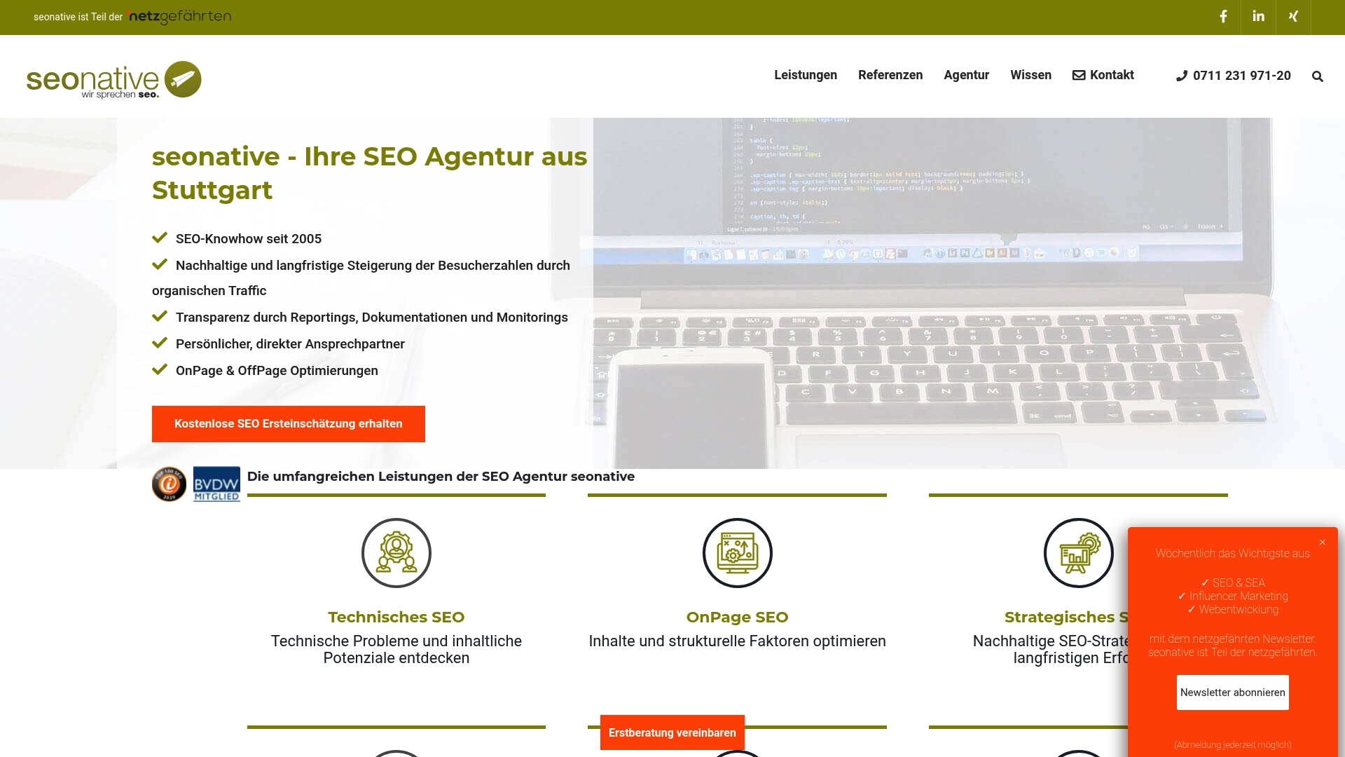 Seonative ist eine etablierte SEO-Agentur aus Stuttgart mit über 20 Mitarbeiterinnen und Mitarbeitern und markanter Erfahrung seit 2005. Die Agentur hat mehr als 900 Projekte für über 400 Kunden umgesetzt und setzt auf transparente Prozesse, festen SEO-Manager und nachhaltige, ergebnisorientierte Strategien. Kurz gesagt: solide Handwerkskunst im SEO-Bereich mit klarem Fokus auf langfristiges Wachstum. Nicht für alles. Nur für SEO.