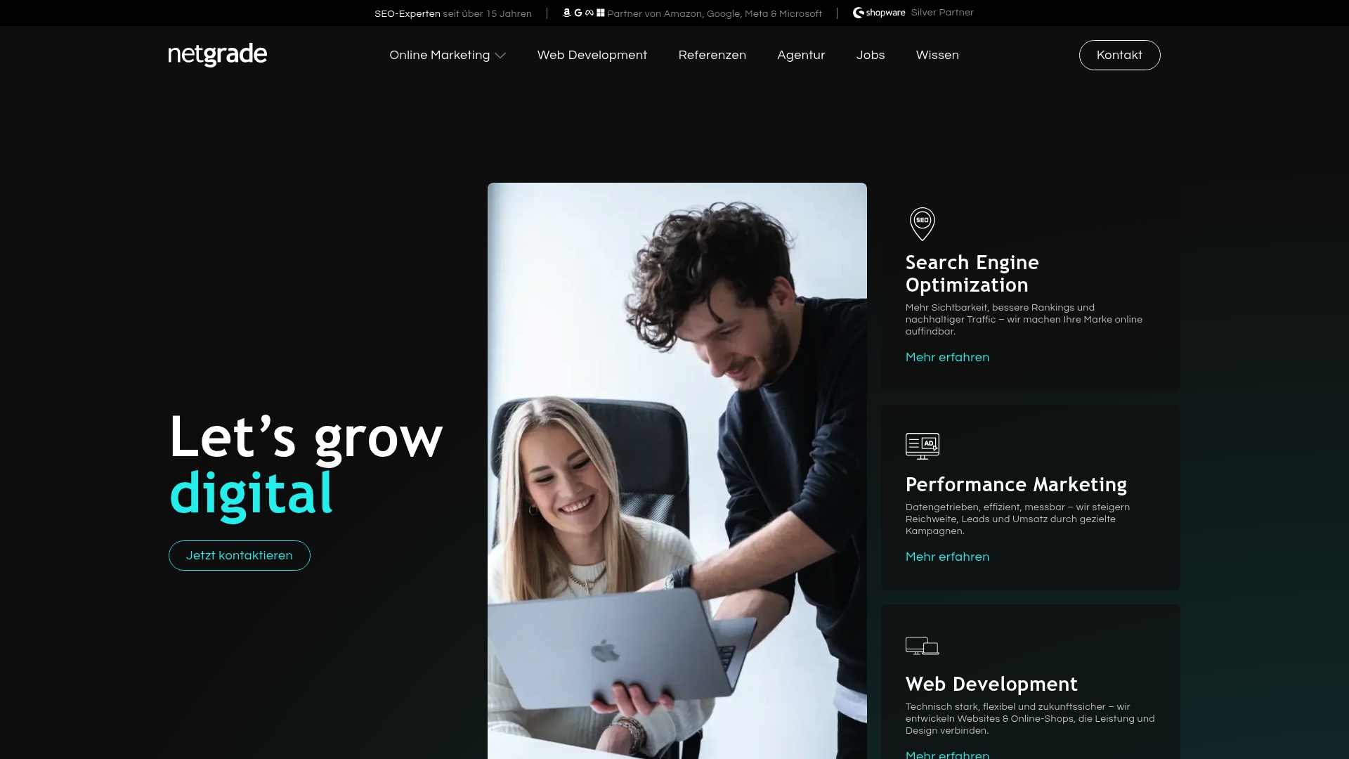 Netgrade ist eine Full-Service Online Marketing Agentur mit über 15 Jahren Erfahrung, die SEO, Performance Marketing und Web Development kombiniert, um die digitale Präsenz von Unternehmen zu stärken. Die Agentur arbeitet eng mit Kunden zusammen und bietet maßgeschneiderte Strategien statt Standardpakete.