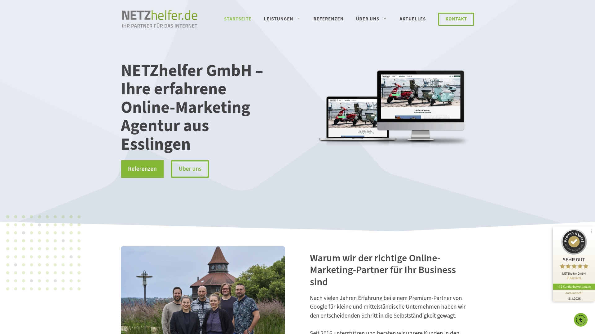Ein mittelständisches Handwerksunternehmen beauftragte NETZhelfer mit einer neuen Website, laufender SEO-Optimierung und gezielten Google-Ads-Kampagnen zur Gewinnung lokaler Aufträge. Ergebnis: bessere Auffindbarkeit in der Region, qualifizierte Anfragen aus dem Einzugsgebiet und eine klarere Darstellung der Leistungen online.