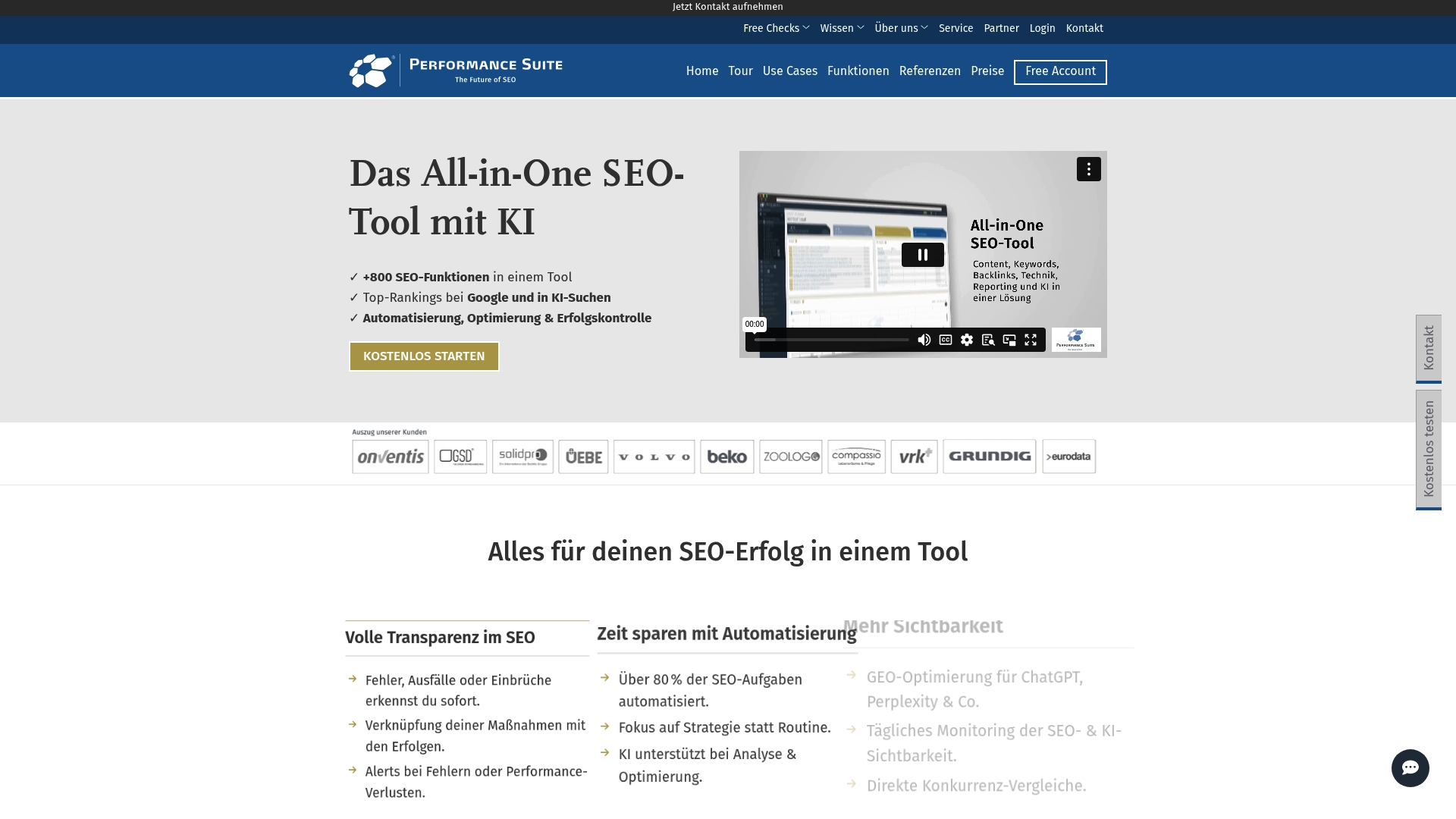 | Performance Suite | Echtzeit-Datenanalyse, automatisierte SEO-Prüfungen | All-in-One-System, zentrale Datenverwaltung | Preis nach Vereinbarung |