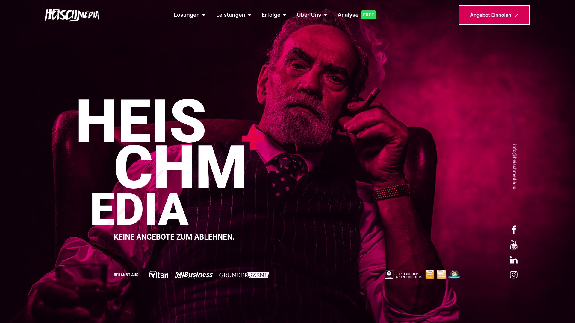 heischMedia passt zu Unternehmen und Dienstleistern, die ihre digitale Sichtbarkeit erhöhen und Marketingprozesse mit KI automatisieren wollen. Besonders geeignet sind Kanzleien, Immobilienmakler, Coaches, E-Commerce-Unternehmen, SaaS-Firmen und Start-ups, die branchenspezifische Expertise suchen.