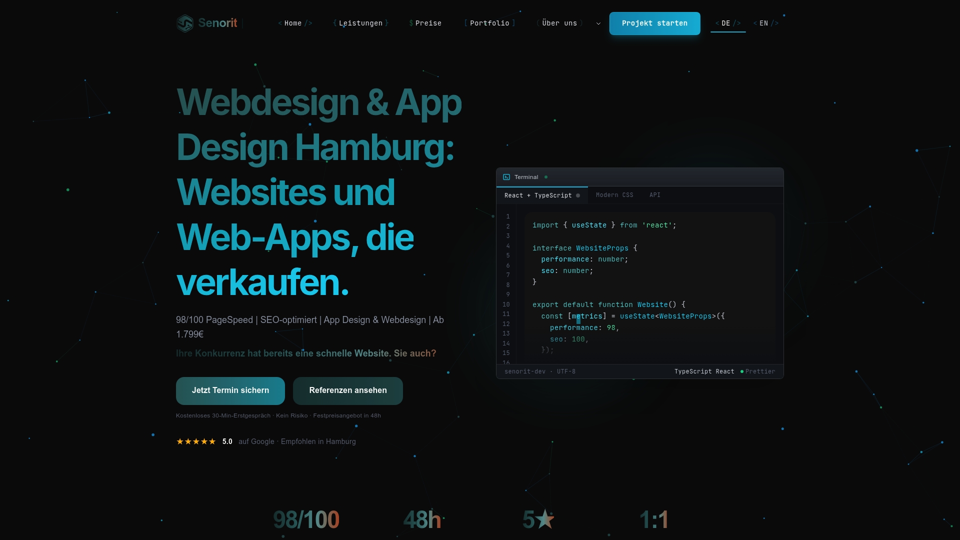 Senorit liefert maßgeschneiderte Webdesign und App Design mit klarem Fokus auf Performance und Suchmaschinenoptimierung. Die Agentur aus Hamburg bietet transparente Festpreise und einen schnellen Projektstart für Unternehmen, die kurzfristig moderne Webprojekte umsetzen wollen.