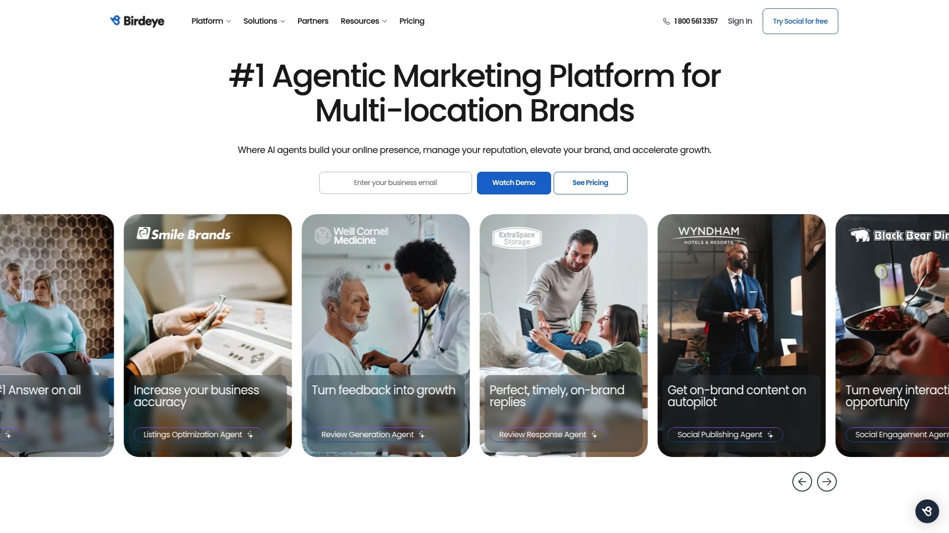 Birdeye är en plattform för flerplatsvarumärken som kombinerar AI-agenter för omdömen, listningar, sociala medier och lokal sökoptimering. Tjänsten riktar sig främst till organisationer som behöver skala upp kundengagemang och ryktehantering över många enheter. Det är kraftfullt och fullt av automation men kräver tid för onboarding om du är en mindre aktör. Kort sagt: stark funktionalitet för komplexa behov men inte alltid smidigt för nybörjare.