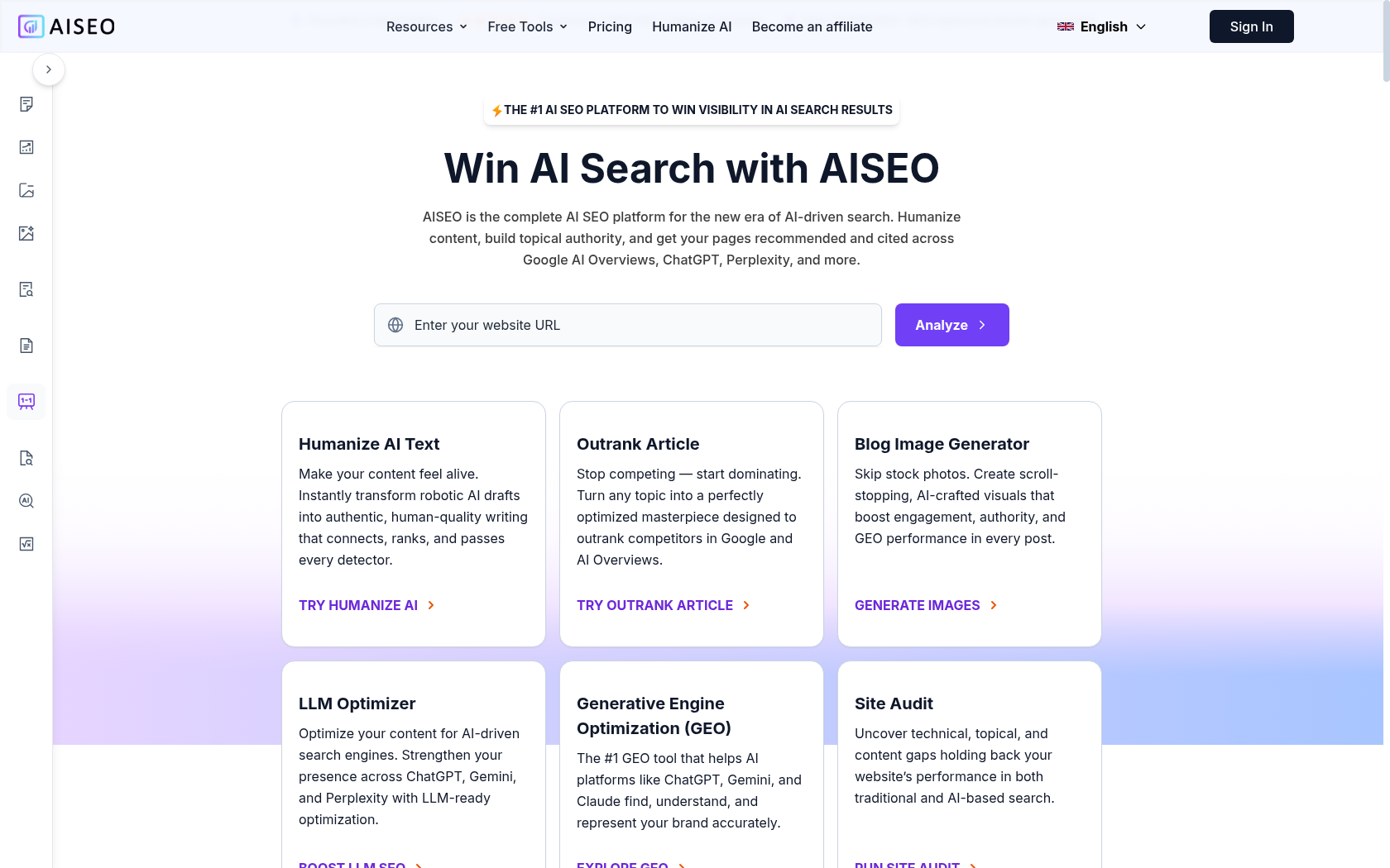 AISEO.ai είναι μια ολοκληρωμένη πλατφόρμα AI SEO με έδρα το Amsterdam και πάνω από 1.000.000 χρήστες, που έχει παραγάγει πάνω από 10.000.000 άρθρα. Στόχος της είναι να βοηθά επιχειρήσεις και SEOs να κυριαρχήσουν σε περιβάλλοντα αναζήτησης με AI όπως ChatGPT και Gemini. Προσφέρει εργαλεία για δημιουργία περιεχομένου, οπτικό υλικό και ανάλυση θεματικής αρμοδιότητας. Έντονα χρήσιμη για ομάδες που στοχεύουν ορατότητα σε σύγχρονες μηχανές αναζήτησης.